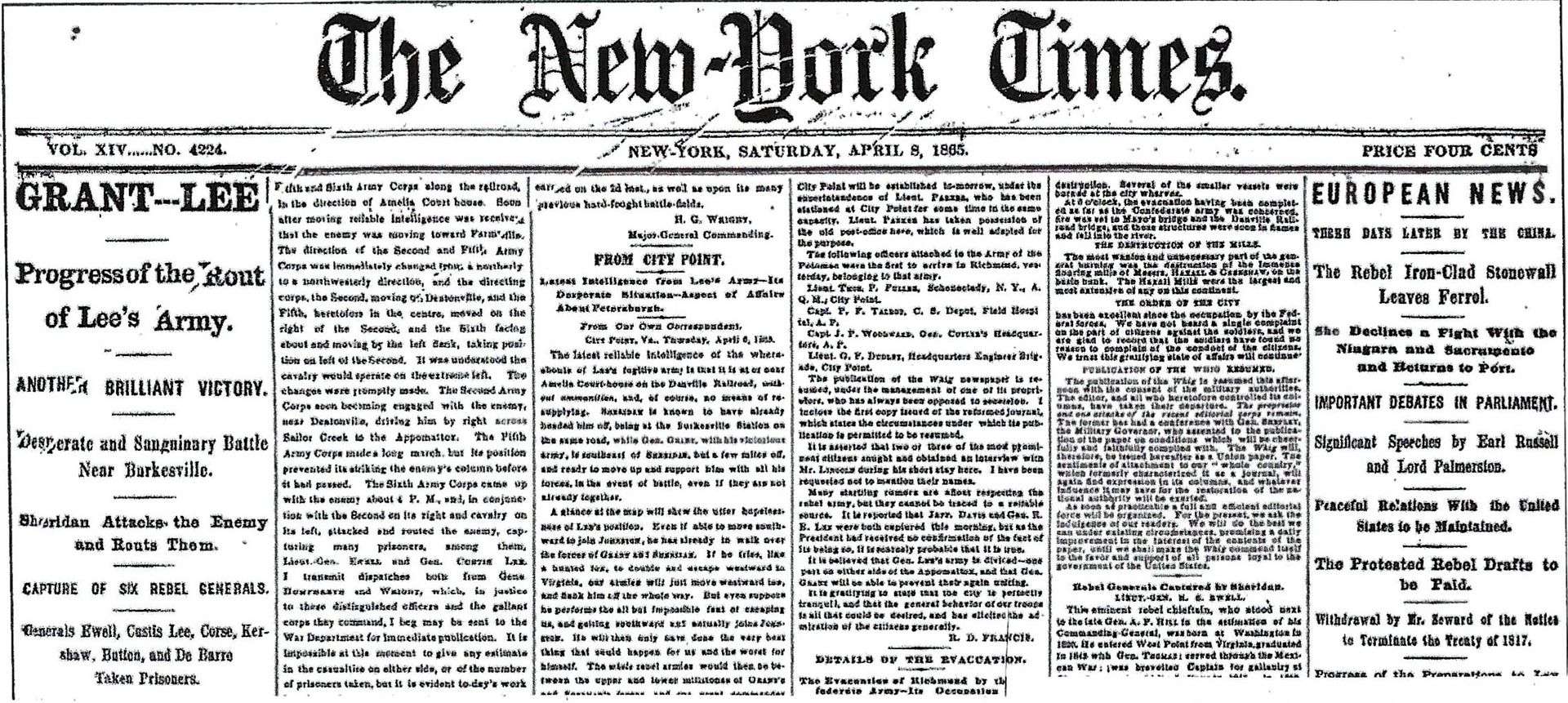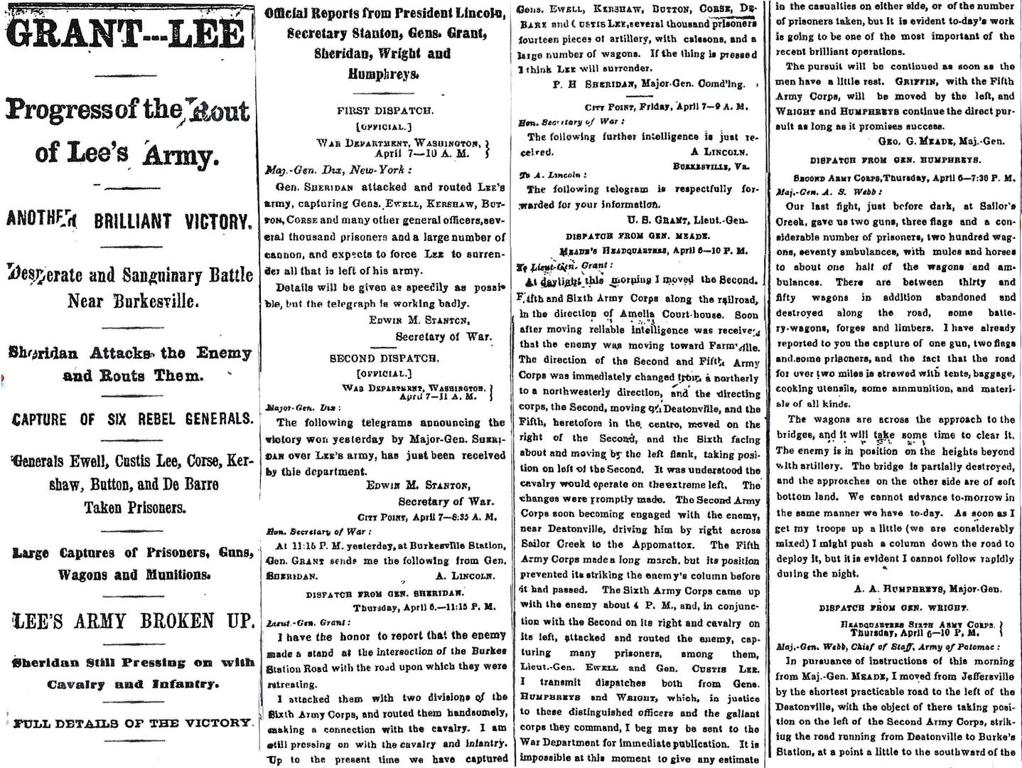 Gen. SHERIDAN attacked and routed LEE's army, capturing Gens. EWELL, KERSHAW, BUTTON, CORSE and many other general officers, several thousand prisoners and a large number of cannon, and expects to force LEE to surrender all that is left of his army.