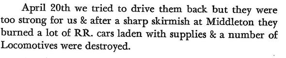 Diary of 1st Lieutenant John S. Morgan: Wednesday, April 19, 1865 (“Reported that 8 miles from this camp is a Reb force of 8000.”)