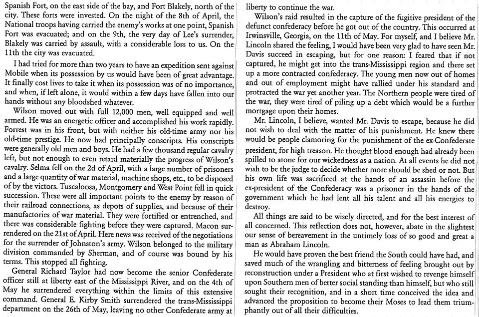 Diary of 1st Lieutenant John S. Morgan: Tuesday, April 18, 1865 (“It is reported that a fort on the Tombigbee has surrendered to Smith on same conditions Grant gave Lee.”)