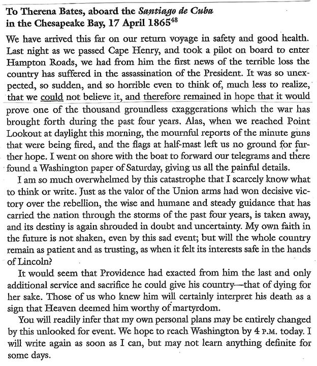 Brigadier-General Rutherford B. Hayes to Sophia Birchard Hayes, Sunday, April 16, 1865 (“Mr. Lincoln’s fame is safe. He is the “Darling of History” evermore.”)