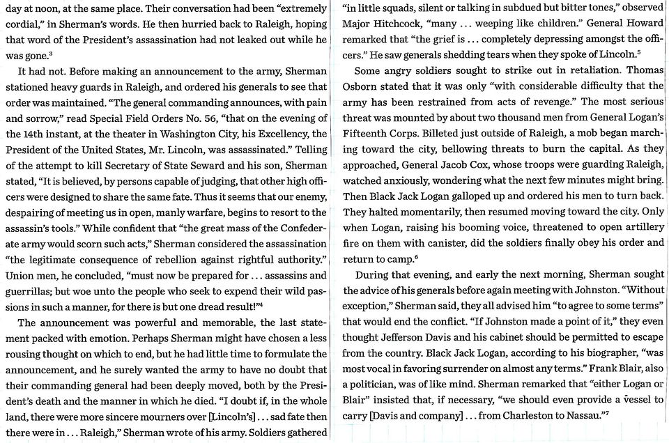 Major-General William T. Sherman to Lieutenant-General Ulysses S. Grant & Edwin M. Stanton, April 15, 1865 (“I send copies of a correspondence begun with General Johnston, which, I think, will be followed by terms of capitulation.”)