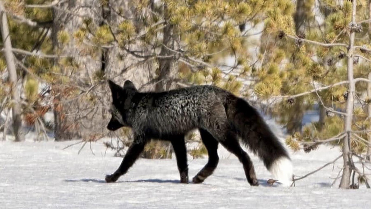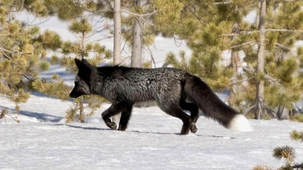 A fox with rare black fur made a brief roadside appearance in Yellowstone National Park last week. The fox’s coloring is probably the result of a condition called melanism.