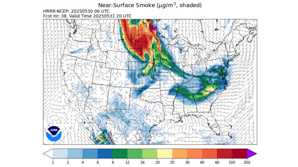 Canadian wildfire smoke and a dust plume from Africa could collide over the South this week