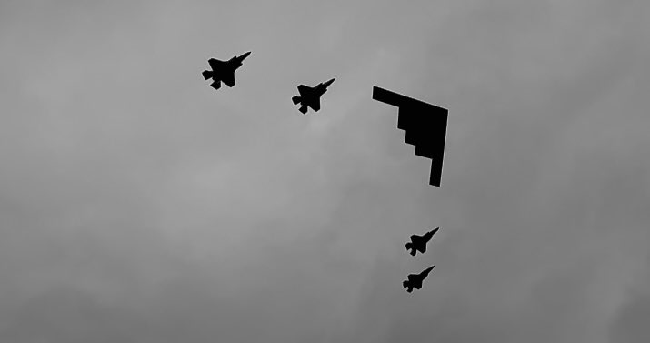 NOW - American fighter jets buzz Putin and Trump while walking the red carpet.