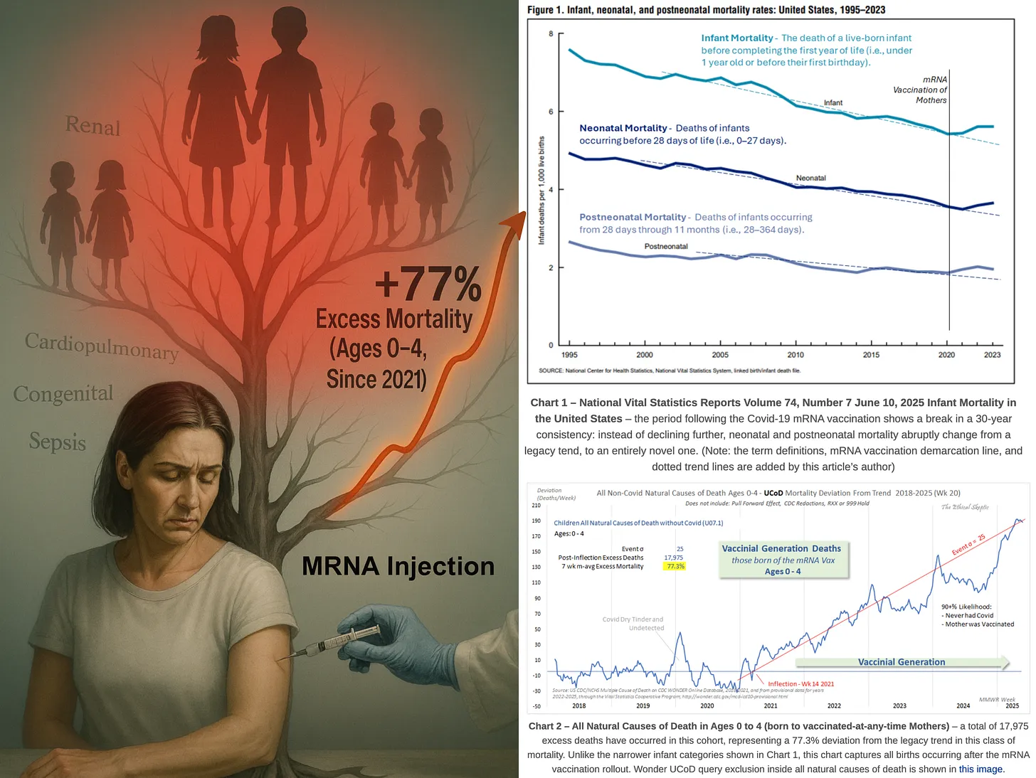 Catastrophic new data are emerging on COVID-19 mRNA injections — pointing to nothing less than a transgenerational crisis. The evidence now shows an unprecedented rise in infant mortality, mounting proof of sterilization, total collapse of birth rates, and the devastating “Cascade of Harms” being documented in the scientific literature.
