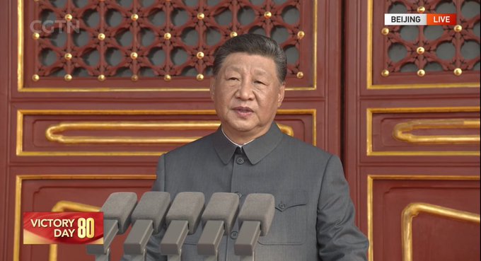 Flanked by Russia's Vladimir Putin and North Korea's Kim Jong Un, a smiling Xi strolled up a red carpet to take his seat for the lavish event at Tiananmen Square to mark 80 years since Japan's defeat at the end of World War Two.