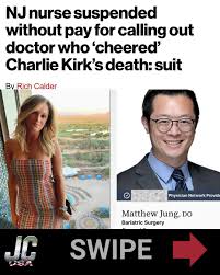 A New Jersey nurse claims she was suspended for confronting a surgeon who allegedly celebrated Charlie Kirk’s assassination, declaring he 'had it coming.'