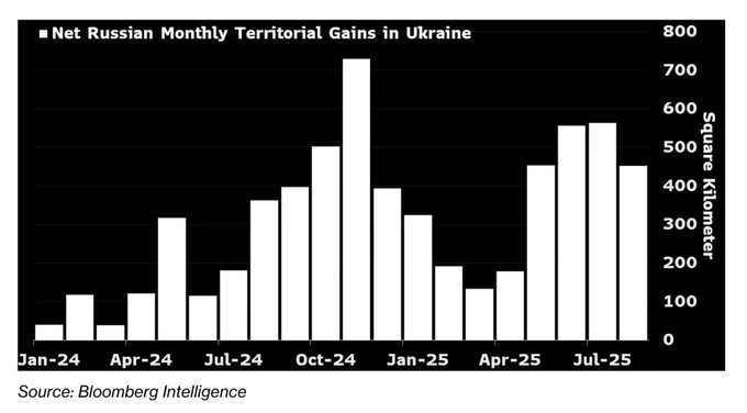 New Bloomberg data showing Russia's total territorial gains since January 2024 amount to 1.05% of Ukraine.