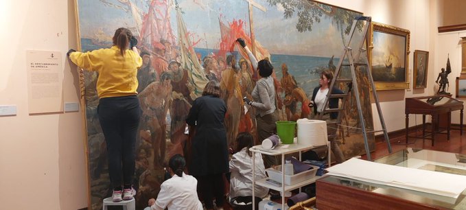 Visitors were evicted during the intervention but hours later, the Navy announced on its social networks that the painting had been restored and that the work was once again on display.