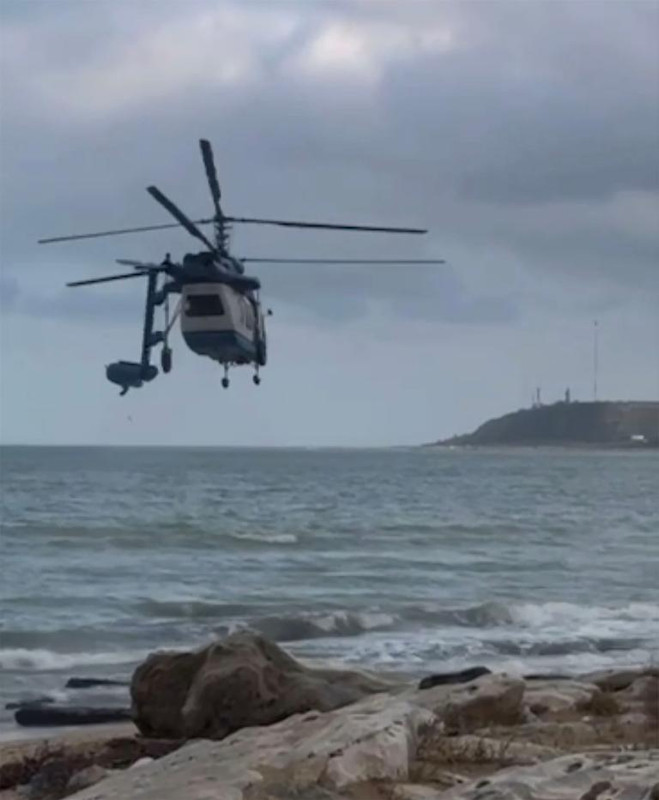 After clipping off its tail, the helicopter then drifts along the Caspian Sea — possibly searching for somewhere else to land.