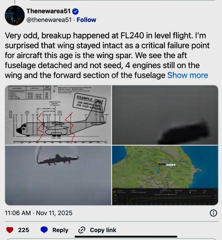 Footage of Turkish C-130 military transport plane crashing in Georgia after taking off from Azerbaijan https://t.co/6WPtqeJKc8 pic.twitter.com/ixA67w8Ndq— Polymarket Intel (@PolymarketIntel) November 11, 2025