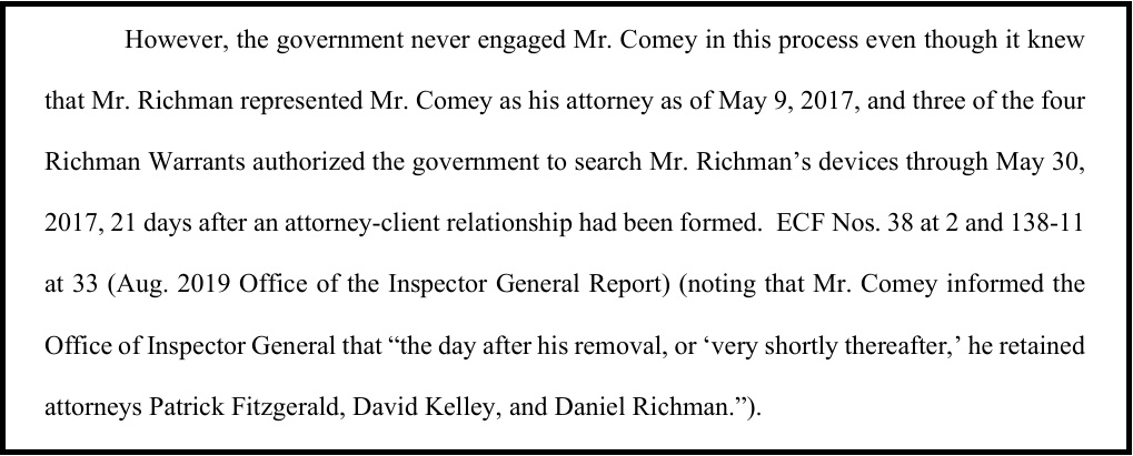Seriously though, don’t waste any hopium on this case, and expect the judge to require the government to pay all of Comey’s legal fees.