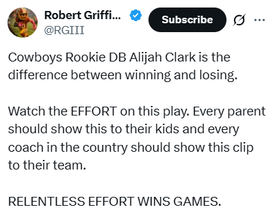 This effort by #Cowboys rookie Alijah Clark really caught my attention.