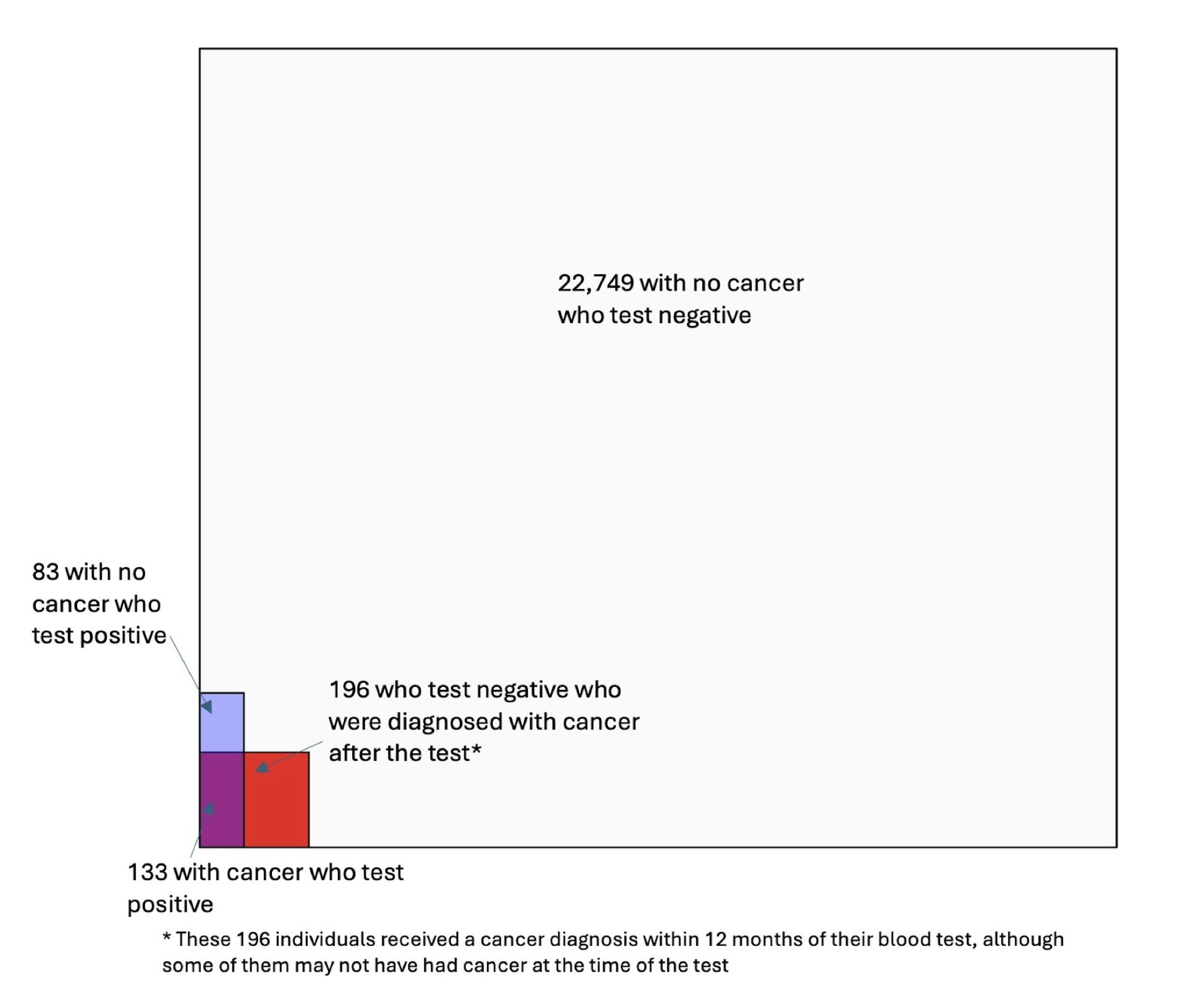 What has been less widely discussed is sensitivity, the measure of how many true cancer cases the test actually detects. On this measure, the result was 40.4%, meaning the test missed around three in every five cancers that appeared over the following year.