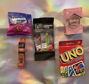 Most photos posted by shoppers who scored the giveaway showed similar contents, including a pack of UNO cards, a miniature Gemz shampoo package, a small bag of Nerds candy, an Elf cosmetic product, and a variety pack of LMNT electrolyte water supplements. The small items looked tiny in the oversized tote bag.