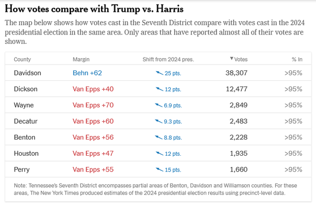 I’m sort of correcting myself. In 2024 TN-07 was won by the Republicans by 22% but the entire state went for Trump by 29%
