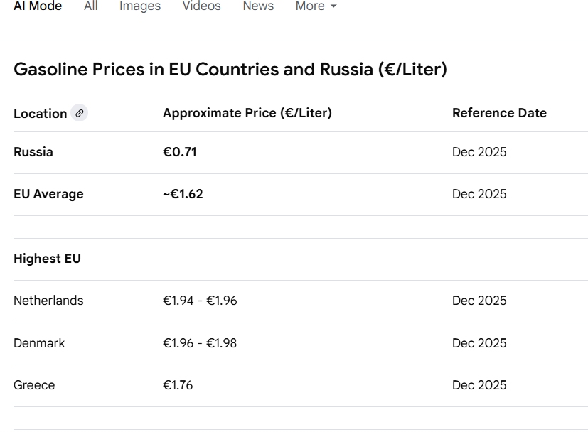That would bother me if I were considering moving there. So are you considering moving there? There is a lot for conservatives to like there (like kids protected from queers, and being able to drive non-electric cars, etc.), so I could see why you’d be so concerned over their gasoline price.