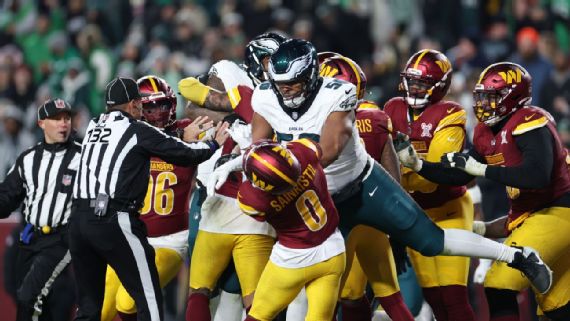 Sirianni said the decision to go for two was math-based. The Eagles believed it was safer to go up 19 rather than 18 in case Washington scored two touchdowns, made both 2-point tries and kicked a field goal down the stretch.