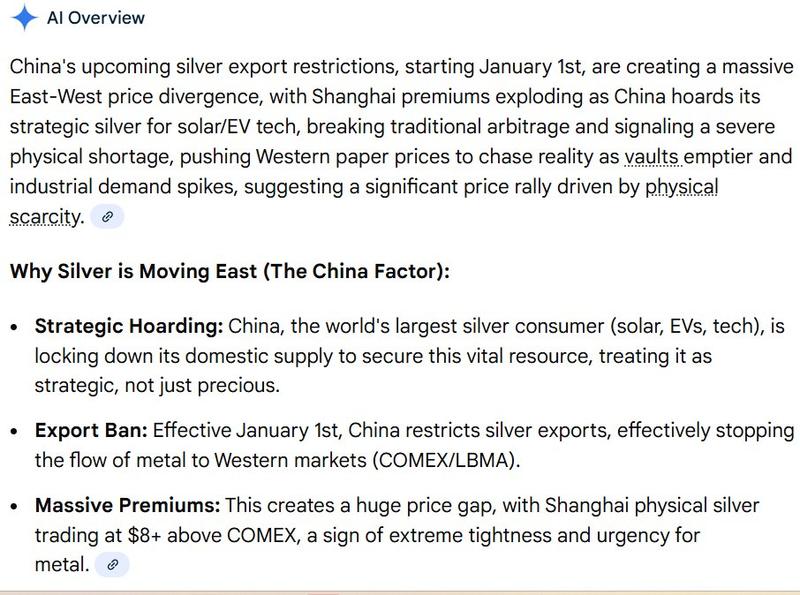 This is not a random regulatory tweak; it mirrors China’s earlier playbook in rare earths, tungsten, and other strategic materials—tighten exports, secure domestic supply, and turn a raw material into geopolitical leverage. Once these curbs begin, the West will no longer be able to count on emergency silver shipments from China to bail out London or COMEX during a squeeze.