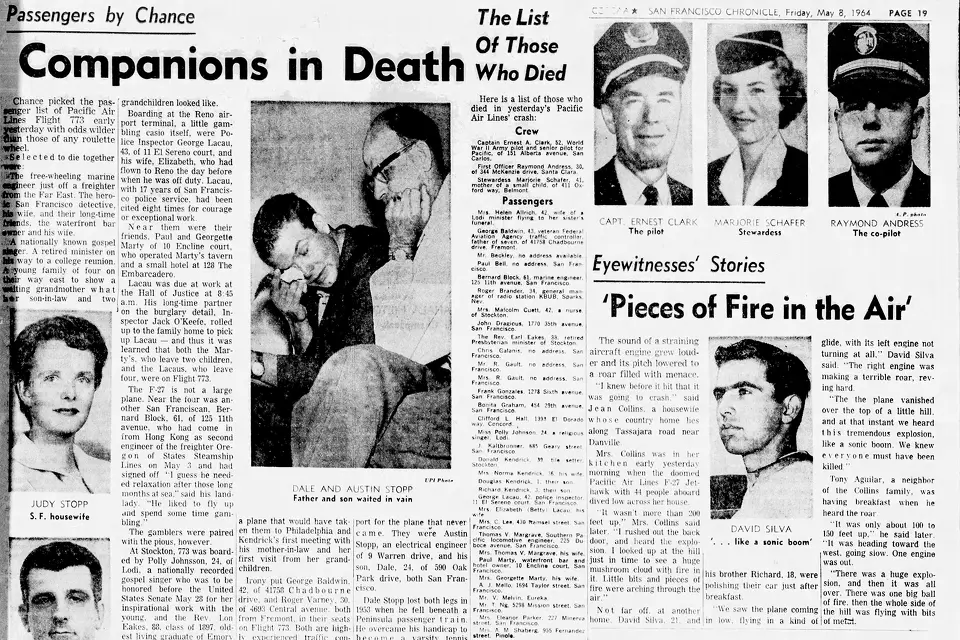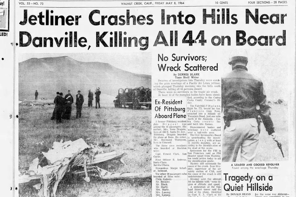As Pacific Air Lines Flight 773 made its final approach to SFO, all seemed well. May 7, 1964, had dawned cloudy, but as the two pilots navigated the short flight from Stockton, they’d had no trouble. Behind them, 41 passengers and a flight attendant prepared for landing.