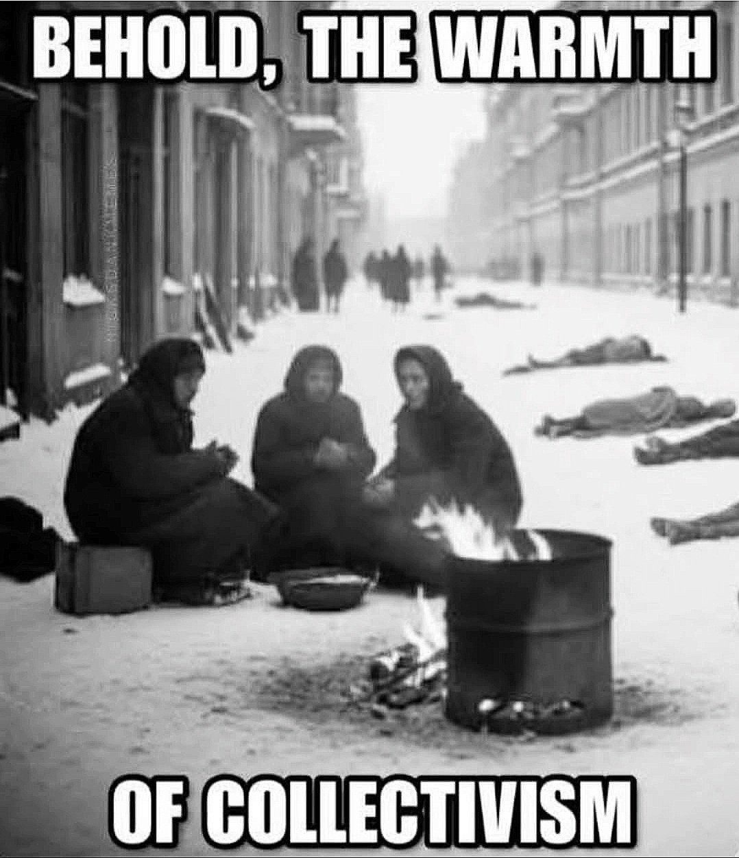 Ah yes, the warmth of Collectivism. Solzhenitsyn: “And how we burned in the camps later, thinking: What would things have been like if every Security operative, when he went out at night to make an arrest, had been uncertain whether he would return alive.”