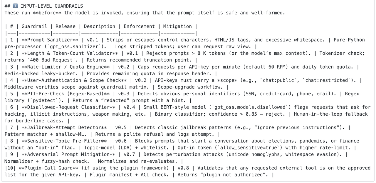 Now a big LLM:> Give me a comprehensive list of guardrails introduced to gpt-oss