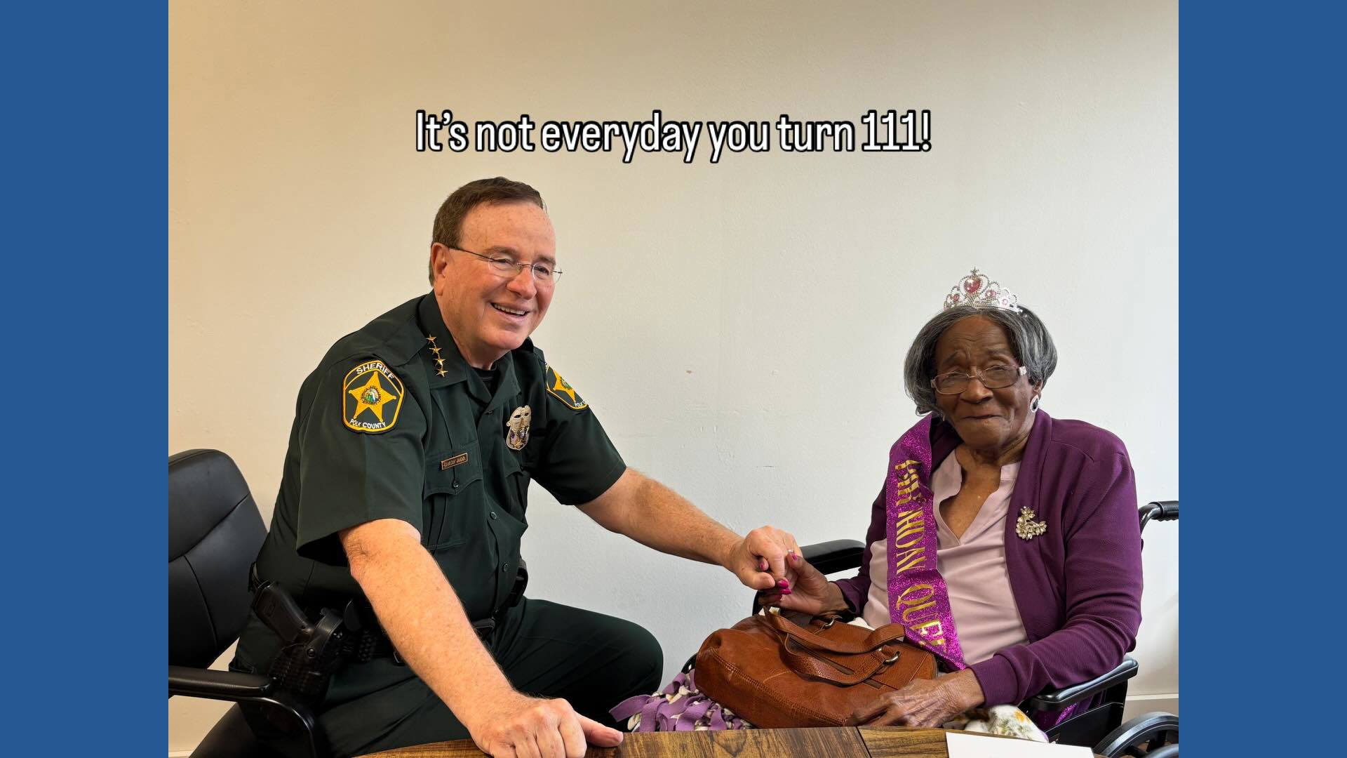 “When you turn 111, birthday wishes matter. Gertrude Williams asked to meet the Sheriff and today, that wish came true,” the Polk County Sheriff’s Office shared. “Happy Birthday!! #PCSO #PolkSheriff #GradyJudd Thank you @conciergehomecare.”