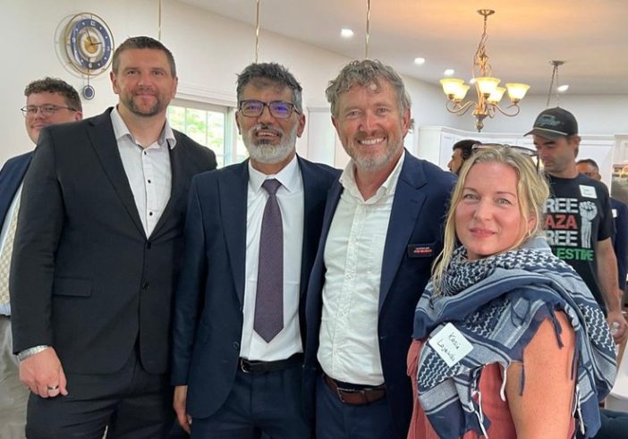 A social media post shows Massie smiling alongside IPAC chairman Rafed Aljoboury in what appears to be a private home in Dunmore, Pa., a Scranton suburb. One week earlier, Aljoboury contributed $500 to Massie's campaign, according to campaign finance disclosure. Aljoboury spoke at the press conference where IPAC launched its partnership with the DSA and compared ICE agents to Nazis.
