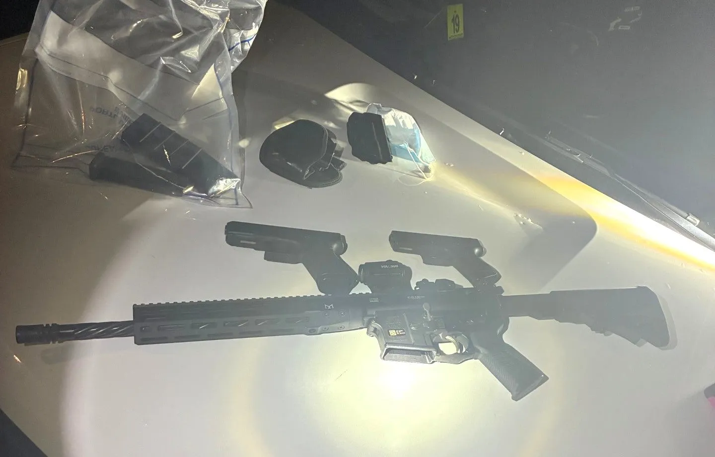 Fadich and Bitgood were located at the scene and identified. Their weapons, an AR-15-style rifle with a muzzle device and two semi-automatic pistols, were seized in the investigation.