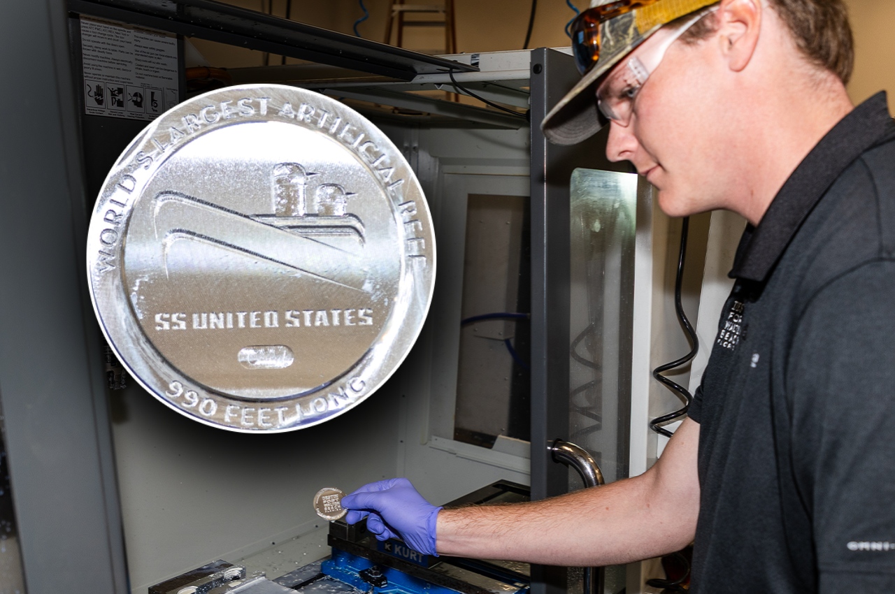 Commemorative coins made from aluminum salvaged from the SS United States are being produced at Northwest Florida State College through a collaboration with Okaloosa County's Natural Resources team ahead of the ship's artificial reef deployment.