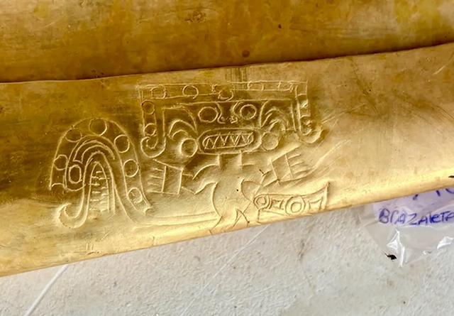 The tomb contained several gold and metal artifacts, including chest plates, ear ornaments and bracelets, as well as "finely crafted ceramics." The tomb is called Tomb 3.