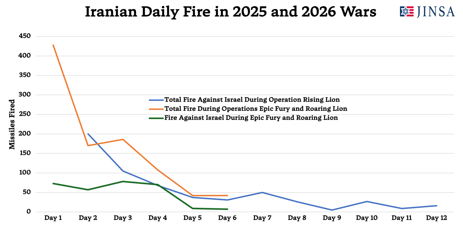 | "Mar 6, 2026", | Low dozens, | 100+,10 missile attack waves over 24h period (Mar 6–7); drone barrages persist but ebbing. |