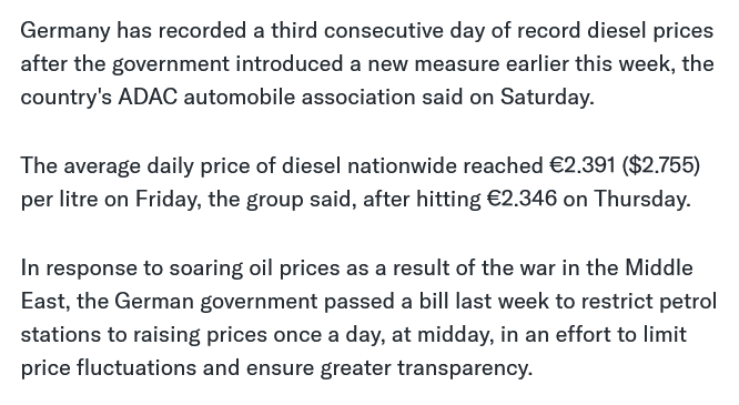 > The average daily price of diesel nationwide reached €2.391 ($2.755)