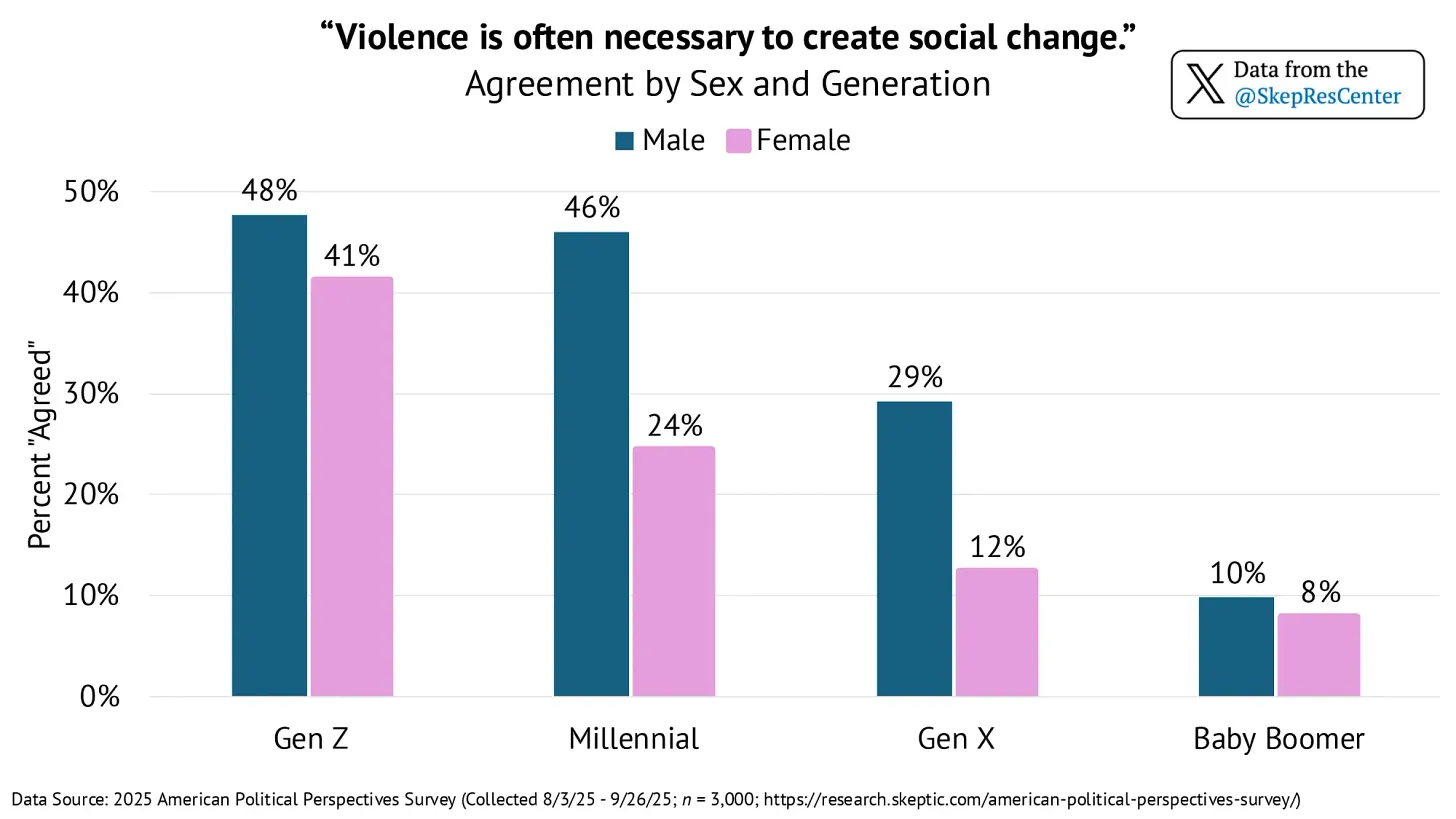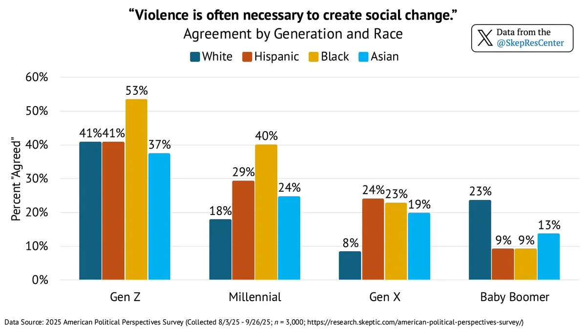 views on political violence are changing and there is one group in particular that has embraced it in far greater proportion than the others.