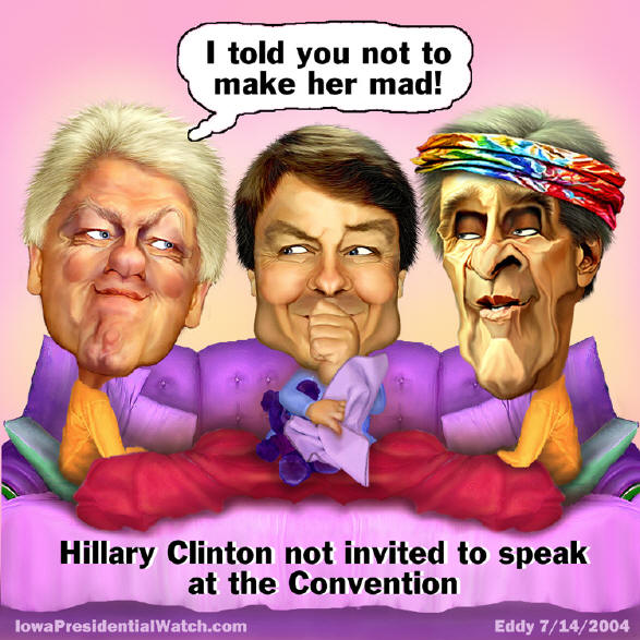 Some wondered if the Kerry-Edwards campaign was worried about being upstaged by a woman who has been mentioned as a possible presidential candidate, most likely in 2008. Others speculated that the campaign was worried that Mrs. Clinton may be too polarizing a political figure to showcase during an event intended to appeal to the broadest political audience.
