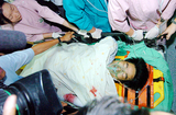 Chang was shot at least twice in his left arm, and according to pictures provided by the police, he also had countless minor wounds all over his body. Police said that the wounds were probably from the gunfight. Criminal Investigation Bureau (CIB) Detective Tang Jia-jen was also wounded in the battle, although he suffered only a flesh wound to the neck. Both Chang and Tang were described as being in good condition after receiving emergency medical treatment. A man described as Chang's bodyguard, Lin Tai-heng, was also apprehended. However, Lin was shot in the head during the morning raid, and he was in critical condition as of press time yesterday. Approximately half an hour after yesterday's raid began at 9am, the injured Lin was captured and immediately hurried to Taichung's Kuang Tien General Hospital.