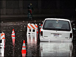 A van sits in at a Sausalito, Calif., freeway exit, Friday, Dec. 30, 2005. Areas north of the San Francisco Bay area were already saturated from earlier onslaughts of rain. (AP)
