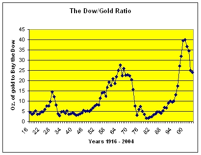 It's the base line ratio that is the ball you need to keep your eye on. That is where history says we are going: 2 to 4 ounces of gold to buy one share of each listed DOW stock.