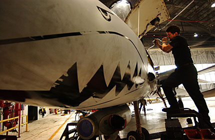 Monroe powered his tractor across the tarmac, the dull gray nose of the plane screeching on the concrete pad littered with pieces of junk metal, bolts, hoses, clamps and landing gear. Never mind that the plane was an F-14 that once flew in Fighter Squadron 154 aboard the carrier Kitty Hawk, based in Japan. It likely was called upon to provide force protection and reconnaissance for U.S. and allied forces along the Asian coast.