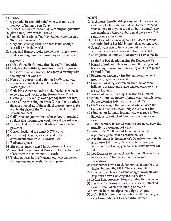 DFU CROSSWORD PUZZLE: Absolutely Wretched Democrat Women