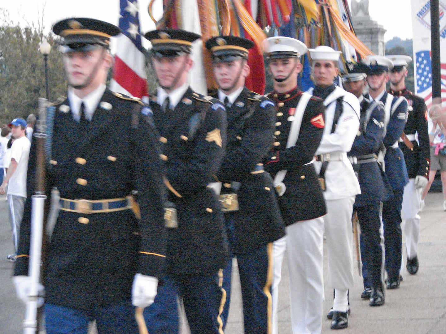 All the pics in this post are by [Mrs] Trooprally. Some are shaky because they were spur of the moment shots where if you didn't get them, it would have been lost. Also, while walking, she couldn't stop without the other walkers piling up behind her. There was about 2 miles of moving patriots. All of [Mrs] Trooprally's pics are HERE, but some are out of sequence.