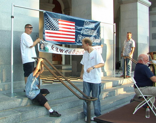 Also taking to the main stage was radio personality and Fox News Channel analyst, Mark Williams. Williams attracted a huge following when he sat at the helm of KFBKs Night Talk Live radio program on weekday nights. After a management change, KFBK sacked Williams and replaced him with former music DJ, Bruce Maiman, who has been an outspoken critic of President Bush and the war in Iraq.
