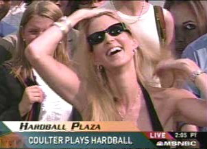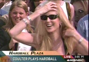 As far as she is concerned, Ann Coulter is a middle-of-the-road moderate and the rest of you are crazy.