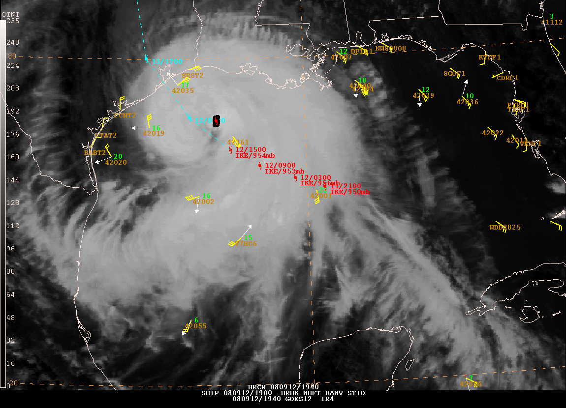 If Ike wobbles left like the last couple of radar frames show, Texas City is toast. If it goes way left, Baytown is in jeopardy. UGH!