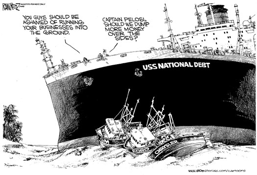 One this is a Bankruptcy in everything but using the "B" word. Everyone gets a haircut just as Pelosi noted which is what happens in a Bankruptcy. The Czar gets to do the job of a Bankruptcy Judge. The question is, will the UAW really play ball. GM gets recapitalized. But what does not happen is what happen to Delphi. They ended up with $10/hr jobs vs. the $14 or so for the 2nd tier guys under the new contract which EVERYONE forgets to mention.