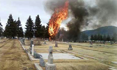 AP is reporting nose first into Holy Cross Cemetery near Butte.