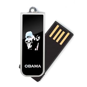 This 2GB USB Drive commemorates President Obamas rise to the White House with an Obama hologram on the face of the pivot-style drive. The drive comes preloaded with nearly an hour of Obamas landmark speeches in MP3 format including his Inaugural Address. This drive is tiny enough to easily fit on a keychain.