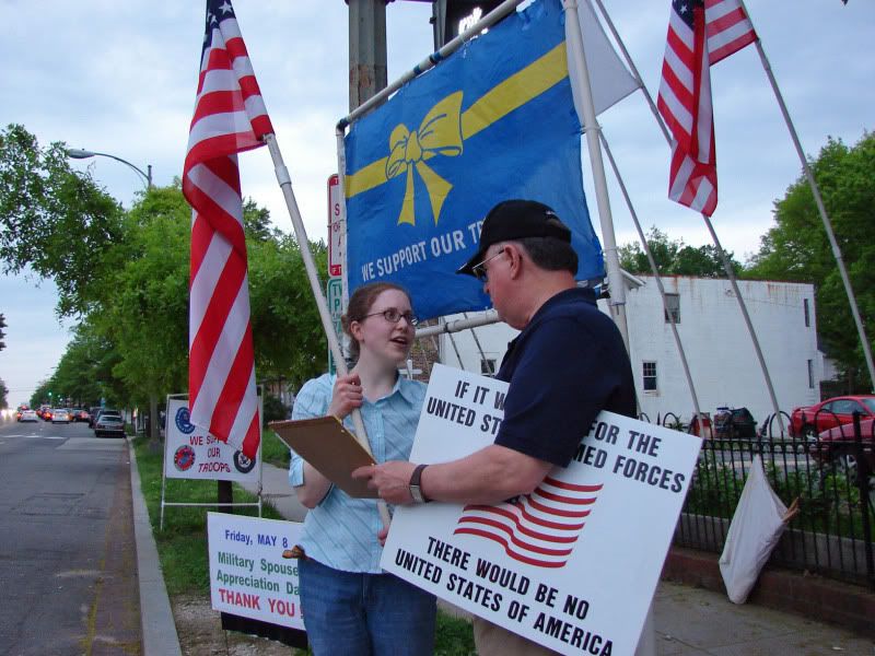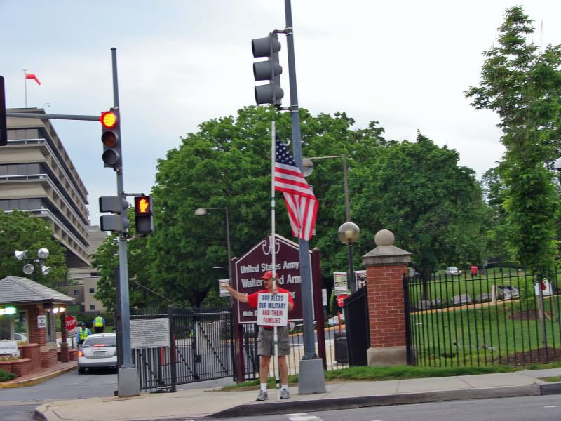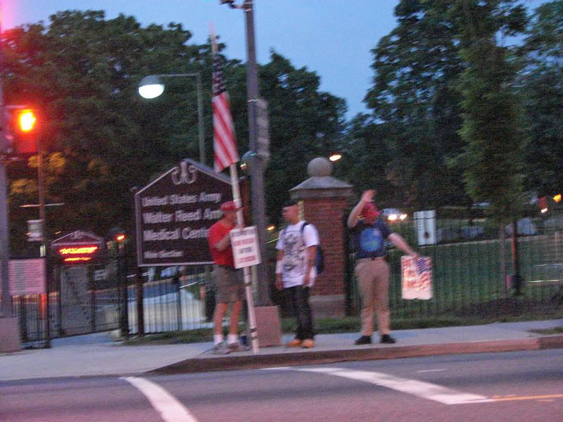 A pleasant evening with the rain holding off. We were on all 4 corners at Walter Reeds front gate, with the moonbats 50 yards down Georgia Ave.