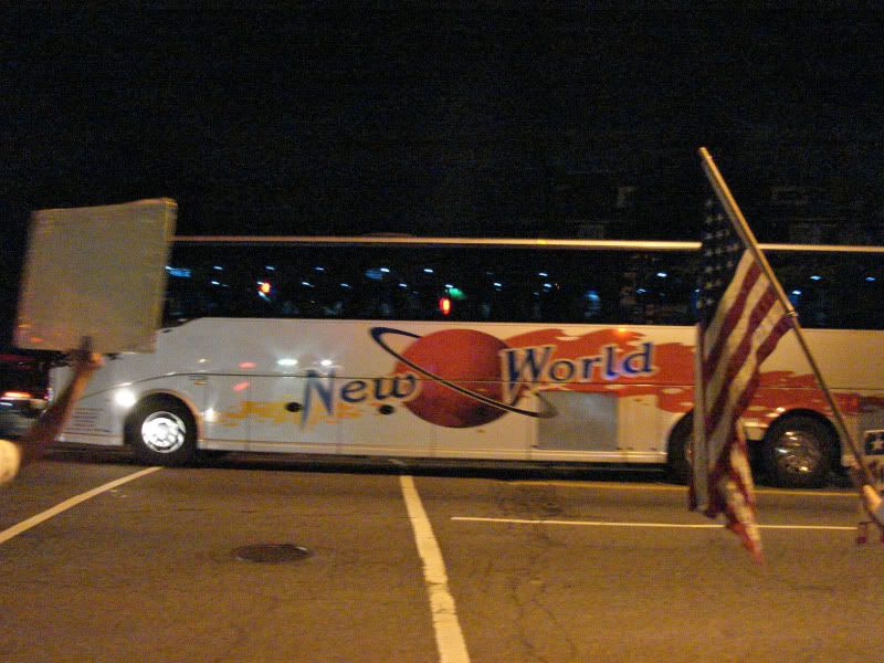 The big bus and little bus (for disabled veterans) both carrying wounded warriors and their families returned from their Friday night dinner around 9:30pm.
