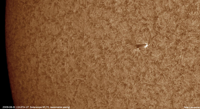 A new sunspot is emerging about 15o north of the sun's equator: map. Pete Lawrence sends this picture from his backyard observatory in Selsey, UK:
